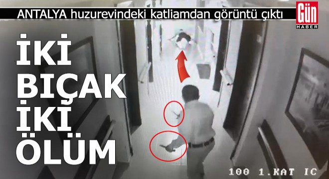 Antalya'nın Döşemealtı ilçesinde kaldığı huzurevinde bıçakla 2 kişiyi öldürüp, 1 kişiyi yaralayan ve tutuklanarak cezaevine gönderilen İzzettin Süğüt'ün, olay anında huzurevindeki görüntüleri ortaya çıktı.