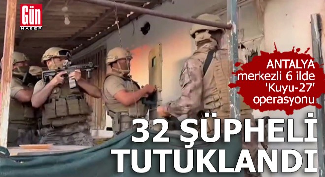 Antalya Cumhuriyet Başsavcılığı ile Emniyet Genel Müdürlüğü Kaçakçılık ve Organize Suçlarla Mücadele Başkanlığı koordinesinde, Antalya merkezli İstanbul, Adana, İzmir, Konya ve Diyarbakır’da 'Kuyu-27' operasyonu düzenlendi. Operasyonda, kendilerine haraç vermeyen iş insanlarını darbederek ikametlerini, iş yerlerini ve araçlarını kurşunladıkları, suç işlemek amacıyla örgüt kurdukları, kasten adam öldürmeye teşebbüs, kasten yaralama, genel güvenliğin kasten tehlikeye sokulması, mala zarar verme ve ölümle tehdit suçlarını işledikleri tespit edilen organize suç örgütü üyesi 34 şüpheli yakalandı. Adli makamlara sevk edilen 34 şüpheli'den 2'si adli kontrol kararı ile serbest bırakılırken, 32 şüpheli tutuklanarak cezaevine teslim edildi.