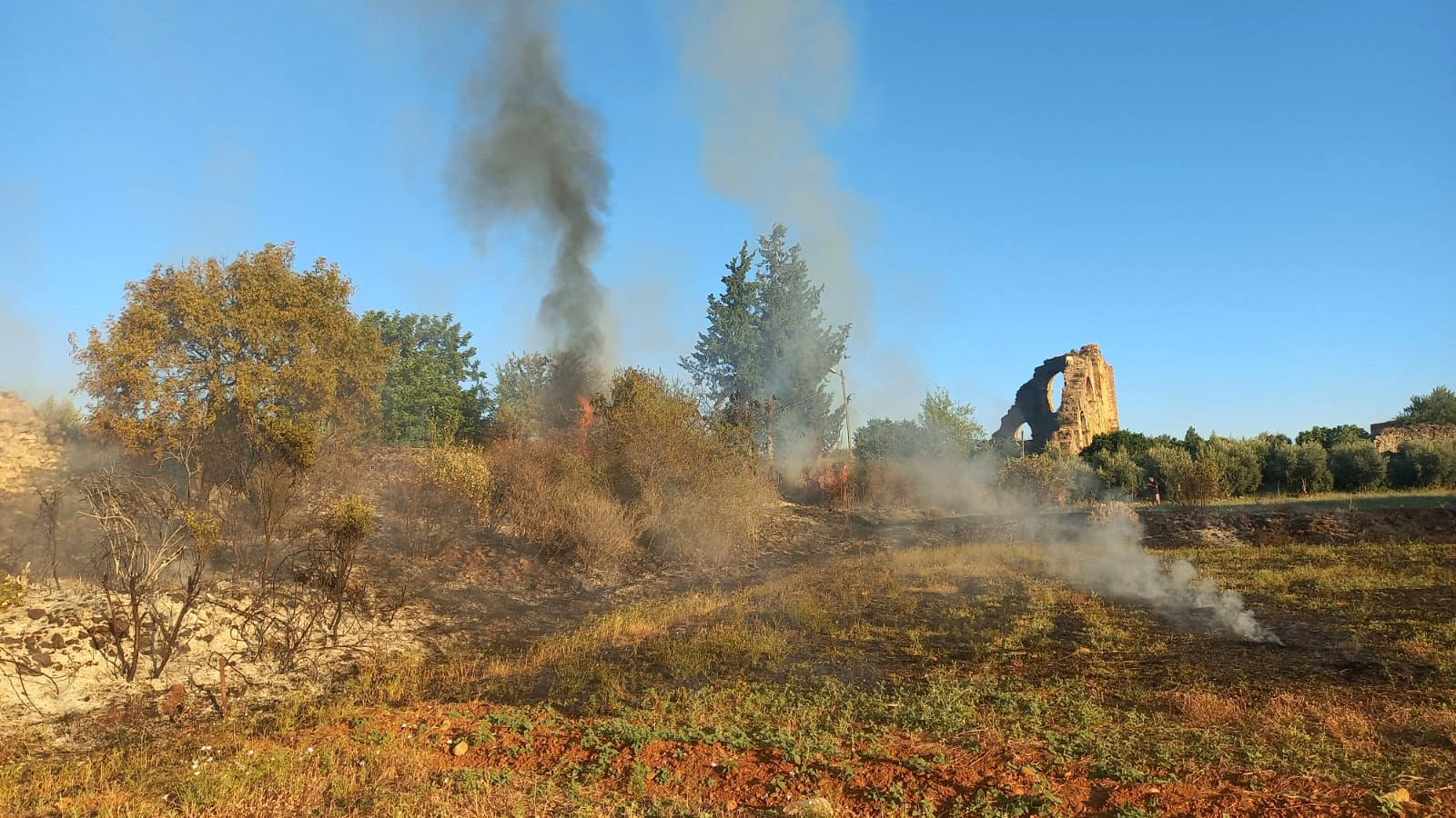 Yangın dün saat 19.00 sıralarında Aspendos Antik Kenti'nin yakınında meydana geldi. Henüz belirlenemeyen nedenle çıkan yangını görenler ihbarda bulundu. İtfaiye ve orman işletme müdürlüğü ekiplerinin müdahalesiyle Aspendos Antik Kenti'nin tarihi su kemerleri çevresindeki alevler kısa sürede söndürüldü. SÖndürme çalışmalarına, bölgede evi ve zeytin bahçesi bulunan vatandaşlar da çeşmelere bağladıkları hortumla yardım etti. Belkıs Mahalle Muhtarı Muammer Aksu, "Tarihi su kemerleri çevresinde çıkan yangın ekiplerce kısa sürede söndürüldü. Yangının çıkış nedeninin henüz belli değil" dedi. Olayla ilgili inceleme başlatıldı.