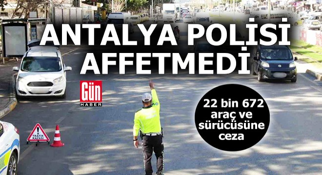 Antalya'da mevcut trafik düzeni ve güvenliğinin devamının sağlanması, denetim faaliyetlerinin her zaman ve her yerde etkin bir şekilde gerçekleştirerek, sürücülerde algılanan 'yakalanma riski' duygusunun sürekli ve üst düzeyde tutulabilmesine yönelik helikopter ve dron destekli denetim yapıldı. Ekiplerce son 1 haftada, yük ve yolcu taşımacılığı, alkol ve uyuşturucu/uyarıcı madde, emniyet kemeri, motosiklet ve motorlu bisikletlere yönelik denetimler gerçekleştirdi. Toplam 66 bin 207 araç ve sürücüsünün kontrol edildiği çalışmalarda, yasak park yapan 3 bin 612, engellilerin araçları için ayrılmış park yerlerine park yapan 532, hız ihlali yapan 6 bin 131, alkollü araç kullanan 132, korsan taşımacılık yapan 29, abartı egzoz kullanan 98, kırmızı ışık ihlali yapan 2 bin 81, emniyet kemeri takmayan 971, kask kullanmayan 3 bin 18, sürücü belgesi olmadığı halde araç kullanan 339, diğer maddelerle birlikte toplam 22 bin 672 araç ve sürücüye trafik idari para cezası uygulandı.