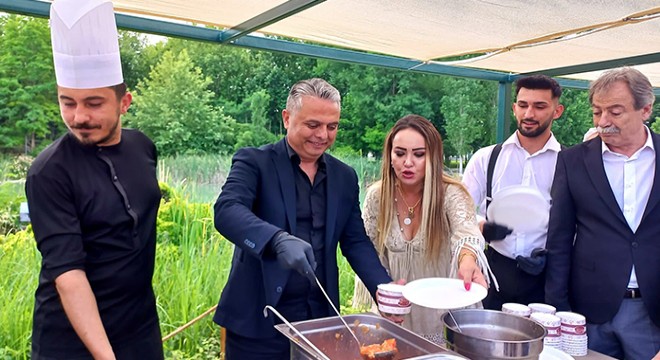 Eline kepçe alıp tabaklara yemek koyan Başkan Ümit Uysal, gastronomimin, yöresel yemeklerin önemini anlattı, her yıl açılan yöresel ürünler fuarıyla da katkı sunduklarını ifade etti.