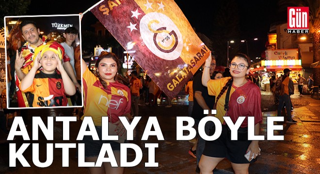 Süper Lig'de Galatasaray'ın, Konyaspor'u 3-1 yenerek şampiyon olmasının ardından Antalya'da yüzlerce sarı-kırmızılı taraftar şampiyonluk sevincini sokaklarda yaşadı. Sokaklara çıkan çok sayıda taraftar, meşaleler yakıp 'Şampiyon Galatasaray' sloganlarıyla eğlendi. Attalos Heykeli önünde toplanan taraftarlar bir mankene Fenerbahçe forması giydirdi. Taraftarların sevincine yoldan geçen bazı sürücüler de klaksonlarıyla eşlik etti. Yolu trafiğe kapatmaya çalışan bazı taraftarlara ise polis uyarıda bulunarak izin vermedi.