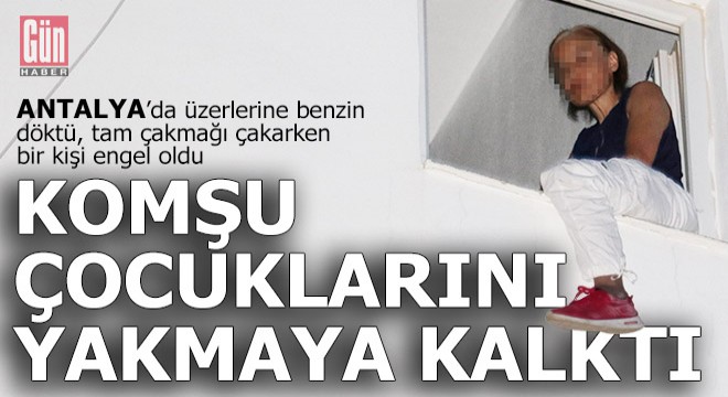 Olay, Kepez ilçesi Fevzi Çakmak Mahallesi 6205 Sokak'taki 5 katlı apartmanda meydana geldi. Yaklaşık 1 ay önce apartmana taşınan ve sürekli 'Kardeşimi evinizde rehin tutuyorsunuz, kardeşime işkence ediyorsunuz' diyerek komşularının kapısını çalan Nazmiye Ş., dün saat 17.00 sıralarında mahallede oyun oynayan komşularının çocukları Z.K. (5), G.Ç. (4) ve diğer çocukları yanına çağırdı. Nazmiye Ş., yanına gelen çocukların üzerine elindeki bidondaki benzini döktü. Çocuğunun çığlıklarını duyan Alihan Ç., Nazmiye Ş.'nin elindeki çakmağa vurup, düşürdü. Elindeki bıçağı da almaya çalışan Alihan Ç.'nin yanından kaçan Nazmiye Ş., apartmanın çatı katına çıkarak camdan sarktı.