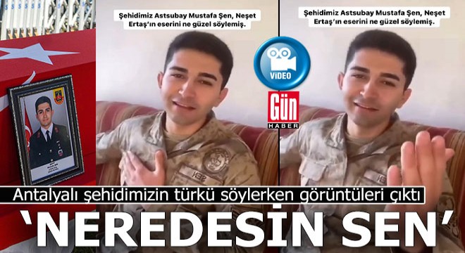 Şırnak'ta Gabar Dağı bölgesi Güleşli köyü sınırlarında bulunan petrol sahasında 30 Nisan'da devriye görevi yapan Çakırsöğüt Jandarma Komando Tugay Komutanlığı'nda görevli tim, kobra tipi araçla seyir halindeyken, sürücü Uzman Erbaş N.C.'nin direksiyon hakimiyetini kaybetmesi sonucu trafik kazası meydana geldi. Kazada araçta bulunan Jandarma Astsubay Çavuş Mustafa Şen ve Uzman Erbaş Ensar Enes Ertaş şehit oldu. Sürücü N.C. ile Asb. Çvş. K.Ç. yaralandı. Şehit Şen'in cenazesi, dün memleketi Antalya'nın Manavgat ilçesi Çakış Mahallesi'nde kılınan namazın ardından gözyaşları arasında toprağa verildi. 3 çocuklu ailenin tek erkek çocuğu olan Şehit Mustafa Şen'in türkü söylerken çekilen görüntüsü ortaya çıktı. Bir silah arkadaşının çektiği görüntüde Şehit Mustafa Şen'in, Neşet Ertaş'ın türküsü 'Neredesin Sen'i söylediği anlar yer aldı. (Mithat ABAKAN/MANAVGAT-DHA)-