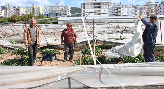 Sera sahibi Ramazan Atıcıoğlu, "İki gün önce yaşanan fırtınadan zarar gördük. Yaklaşık 12- 13 dönüm seramız yıkıldı. Cam seralarda kırılmalar var. Tamir etmeye çalışıyoruz ama nafile. Bu seramız 2 dönüm. Buranın bir dönümü gitti. Bu serayı tamir edeceğiz. Öbür tarafta 9 dönüm bir yer var. Orası yerlebir oldu. Orası bu yıl sezonu bitirdi. Yani yeniye müracaat edeceğiz artık. Seralarımızın bazı yerleri yerle bir oldu. Bazı yerleri yer yer yırtıldı. Ama seralarımızın tamamını söküp yeniden yapacağız. Bu sezon bizim için bitti artık. İnşallah devletimiz bize yardım eder. Kulun yapacağı bir iş yok. Güç yetmez bu seraları yeniden kurmaya. Bu seraların işçiliğini ortaklar yapıyordu. Onlar ağlıyor. Ağlamaktan gözleri kan çanağı oldu" diye konuştu.