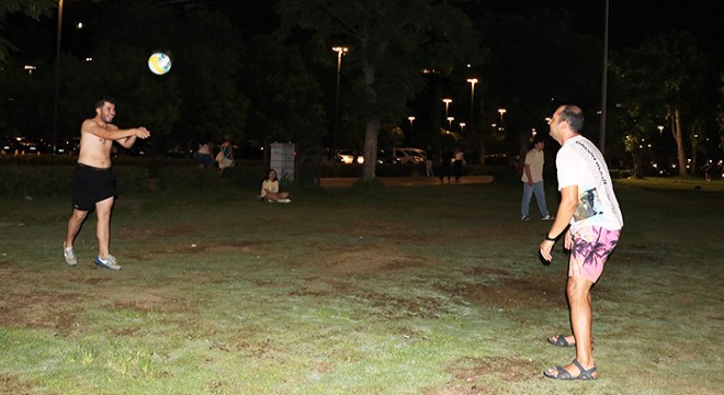 Arkadaşlarıyla sahilde voleybol oynayan Yunus Alparslan, "Gündüzün inanılmaz sıcaklığı ve nemiyle öğle saatlerinde veya akşam üzeri herhangi bir aktivite yapamıyoruz. Spor aktiviteleri için de genelde burayı tercih ediyoruz. Saat 21.00'den sonra hava daha serin oluyor, arkadaşlarımızla aktivite yapabiliyoruz" dedi. Ailesiyle birlikte sahilde piknik yapan Eshabil Gözükara ise "Buraya tatile geldik. Gündüz sıcak olduğu için buraya gelemiyoruz. Akşamları serin olunca geliyoruz. Sıcak olduğu için gündüz gözüyle çıkamıyoruz bir yere" diye konuştu. Diğer yandan sahildeki yoğunluğun geç saatlere kadar sürdüğü görüldü.