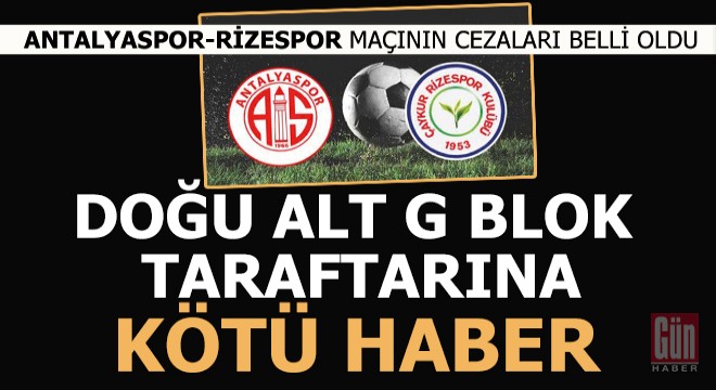 4- FRAPORT TAV ANTALYASPOR Kulübünün, 27.08.2021 tarihinde oynanan FRAPORT TAV ANTALYASPOR-ÇAYKUR RİZESPOR A.Ş. Süper Lig müsabakasında, taraftarlarının neden olduğu çirkin ve kötü tezahürat nedeniyle FDT'nin 53/3. maddesi uyarınca çirkin ve kötü tezahüratta bulunan DOĞU ALT G blokta yer alan seyircilerin elektronik bilet kapsamındaki kartlarının bloke edilmesi suretiyle bir sonraki ev sahibi kulüp olduğu müsabakaya girişlerinin engellenmesine,
