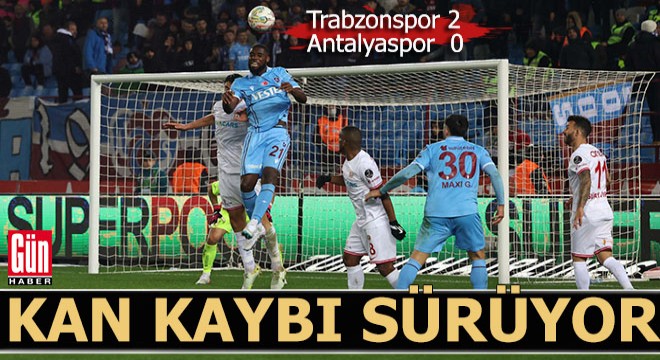 Trabzonspor sahasında konuk ettiği Antalyaspor karşısında sahadan 2-0 galip ayrıldı. Deplasmanda yüzü gülmeyen bordo-mavililer bu skorla evindeki yenilmezlik serisini sürdürdü. Karadeniz ekibi, bu skorla Akyazı’daki yenilmezlik serisini 36 maça çıkardı.