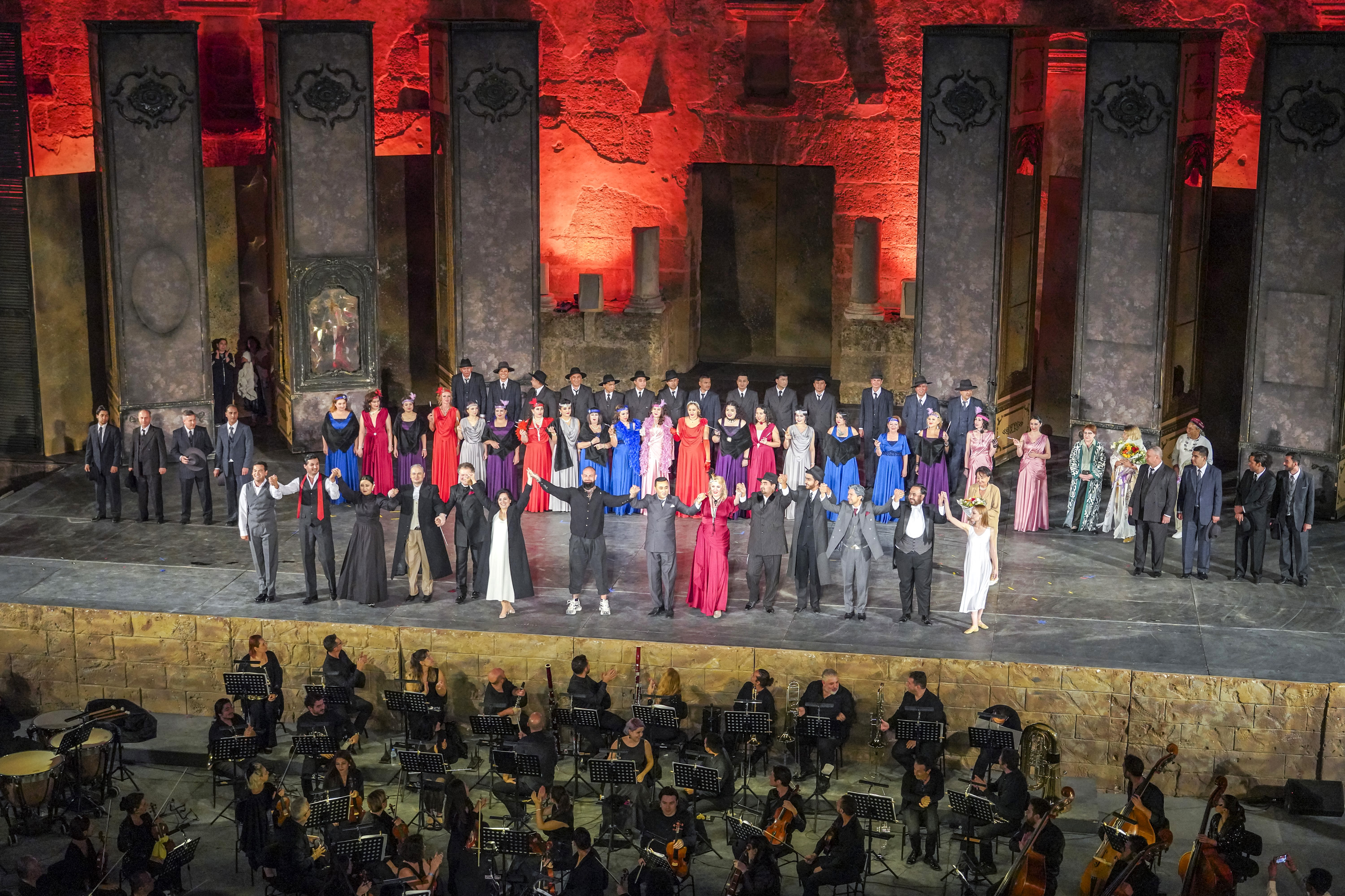 Aspendos'un büyüleyici atmosferinde özgün anlatımı ve dramatik sahne performansıyla festivalin kapanışına damgasını vuran 'La Traviata' operası, antik tiyatroyu dolduran Antalyalılara, yerleşik yabancılara, farklı ülkelerden tatil için Antalya'ya gelen turist gruplarına rüya gibi bir akşam yaşattı. Dramatik ve neşeli sahnelerle dopdolu olan, dekor ve kostümleriyle de göz kamaştıran eserin sanatçıları alkış yağmuruna tutuldu.