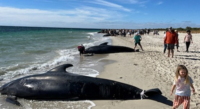Batı Avustralya eyaletindeki Toby’s Inlet plajında bugün 100’den fazla pilot balinanın kıyıya vurduğu ihbarı üzerine bölgeye gelen yaban hayatı görevlileri, deniz bilimciler, veterinerler plajda çalışmaya başladı. Yaklaşık 500 metre kıyı şeridi boyunca yayılmış toplam 160 kadar pilot balinadan oluşan dört sürü tespit ettiklerini belirten uzmanlar, ayrıca kıyıdan 1.5 km açıkta 20 balina olan bir sürü ve 110 balinadan oluşan bir başka sürü daha tespit etti.