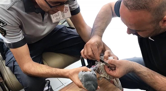 Dün akşam saatlerinde istasyon mahallesinde bir ATM önüne ayağına çuval dolanmış bir güvercin düştü. Güvercin daha sonra ayağındaki çuval ile birlikte İstasyon Caddesinde yol üzerine çıktı. Bunu gören banka güvenlik görevlisi Bahtiyar Kartun, güvercini yoldan alarak bölgedeki esnaftan Barış İlhan'ın işyerine getirdi. Bahtiyar Kartun ve Barış İlhan güvercinin ayağına dolanan çuval parçalarını keserek güvercini doğaya saldı.