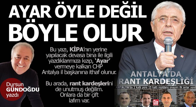 Misal, buna da parti yöneticilerinin, belediye başkanlarının, belediye yöneticilerinin, meclis üyelerinin Muratpaşa, Konyaaltı ve Kepez’deki plazalarda, rezidanslarda mülklerinin var olup olmadığının araştırılması ile başlanmalıdır.”