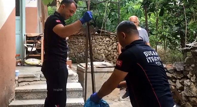 Bucak ilçesi Çavuşlar Mahallesi 3041 sokakta Ümmü Gülsüm Eroğlu'nun evinin bahçesinde dün saat 16:00 sıralarında yaklaşık 1 metre uzunluğunda yılan görenler durumu Bucak Belediyesi itfaiye ekiplerine haber verdi. İhbar üzerine gelen itfaiye ekipleri uzun arayıştan sonra yılanı evin girişinde odunlar arasında olduğunu belirledi. Özel aparatla yakalanan yılan itfaiye ekipleri tarafından ormanlık alanda doğaya salındı. (DHA)