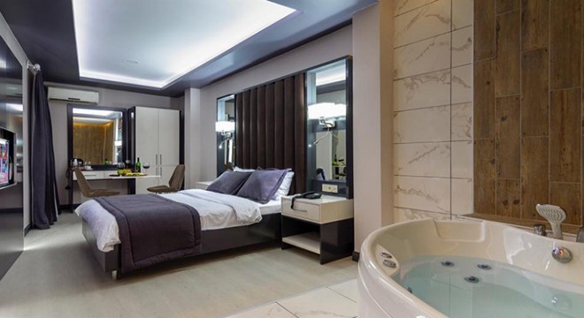 Özellikle jakuzili odaları ve sahile yakın konumu ile dikkat çeken otel, konuklarına benzersiz bir deneyim yaşatmaktadır.