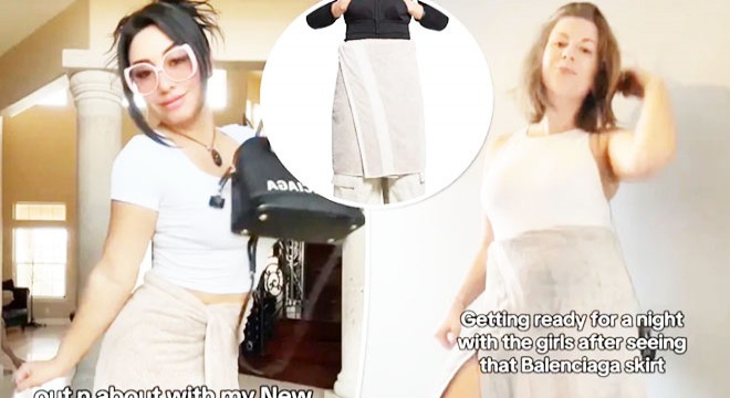Balenciaga'nın sunduğu 925 dolarlık (26 bin 700 TL) havlu etek gibi lüks giyimdeki en son tuhaflığa küçük bir servet harcamak yerine, stil meraklıları bu görünümü elde etmek için dolapların başına geçerek havluları bellerine bağlıyor.