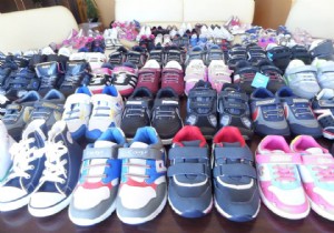 ‘Hiçbir çocuk okula yırtık ayakkabıyla gitmesin’ sloganıyla başlatılan projeyle gönüllülerin bağışladığı ayakkabılar yardıma muhtaç ailelerin çocuklarına dağıtılıyor.