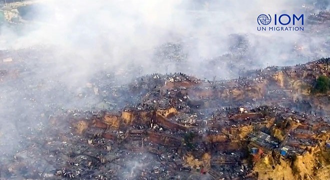 Birleşmiş Milletler (BM) çatısı altında faaliyet gösteren Uluslararası Göç Örgütü (IOM) Bangladeş’in resmi sosyal medya hesabından dün Cox’s Bazar’da kamp 11’de çıkan yangının drone görüntüsü paylaşıldı. Yapılan açıklamada 12 bin mültecinin evsiz kaldığı ve 2 bin barınağın harap olduğu belirtilerek, “BM Göç Ajansı, etkilenen toplulukları desteklemek için derhal müdahale ekiplerini harekete geçirdi. Dünkü büyük yangına müdahale eden ajans, etkilenen insanlara acil sağlık desteği için mobil tıp, ruh sağlığı ve psikososyal destek ekiplerini görevlendirdi. IOM liderliğindeki tıbbi sevk birimi, 14 ambulansı hazırda bekletiyor” ifadeleri kullanıldı.