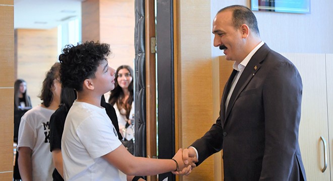 Konyaaltı Belediye Başkanı Cem Kotan, makamında ağırladığı öğrencilerin sorularını yanıtladı. Yerel yönetim olarak gençlerin gelişimine katkı sağlamanın öncelikli hedeflerinden biri olduğunu belirten Başkan Kotan, öğrencilerle sık sık bir araya gelmekten duyduğu memnuniyeti ifade etti. Öğrencilerin, 'Biyomikrofon projeleri' kapsamında sorduğu soruları yanıtlayan Kotan, çevre, sürdürülebilirlik ve biyoteknoloji üzerine değerlendirmelerde bulundu. Başkan Kotan, Konyaaltı Belediyesi olarak doğa dostu projelere her zaman destek vereceklerini aktardı.