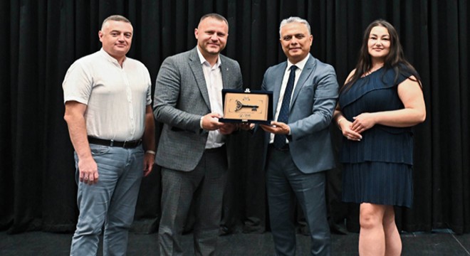 Başkan Uysal konuşmasının ardından heyetlere Kaleiçi’nin tarihi konak anahtarlarının replikalarının yer aldığı plaketleri takdim etti.