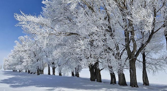 Hava sıcaklığının sıfırın altında 14,8'e düştüğü Erzurum'da ağaçları kırağı kapladı. Çatılarda buz sarkıtları oluşurken, dışarda olanlar nefes almakta zaman zaman güçlük çekti. Yeni yılla birlikte soğuk havanın etkili olduğu Erzurum'da tel örgüleri buz kapladı.