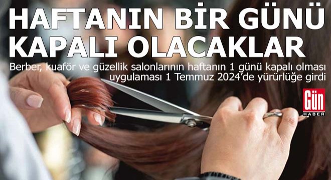 Bakanlıktan yapılan yazılı açıklamada, berber, kuaför ve güzellik salonu işletmecilerinin büyük çoğunluğunu barındıran sektör paydaşları tarafından Ticaret Bakanlığı'na iletilen talep ve öneriler değerlendirilerek, ülke genelinde tüm berber, kuaför ve güzellik salonlarının haftanın 1 günü kapalı olması yönünde 18 Ağustos 2022 tarihinde karar alındığı hatırlatıldı. Açıklamada, "Devam eden süreçte kapalı olunacak günün, her ilin sektörel yapısı ve işletme profili ile tüketici tercih ve ihtiyaçları göz önünde bulundurularak Valilikler tarafından belirlenebilmesi amacıyla sektörün geniş katılımının sağlandığı çalışmalar yürütülmüş olup gelinen noktada bu çalışmalar tamamlanmıştır. Bu doğrultuda, berber, kuaför ve güzellik salonlarının ülke genelinde haftanın 1 günü kapalı olması uygulaması 1 Temmuz 2024 tarihi itibarıyla yürürlüğe girecek ve bu işletmelerin valilikler tarafından belirlenen günlerde kapalı olmadığının tespiti halinde Ticaret Bakanlığımızca idari yaptırım uygulanacaktır" denildi.