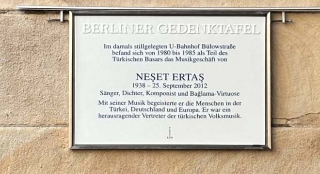 Uzun yıllar Almanya’da yaşayan halk ozanı Neşet Ertaş için Berlin’in Schöneberg semtindeki Bülowstrasse metro istasyonuna bir anı plaketi asıldı.