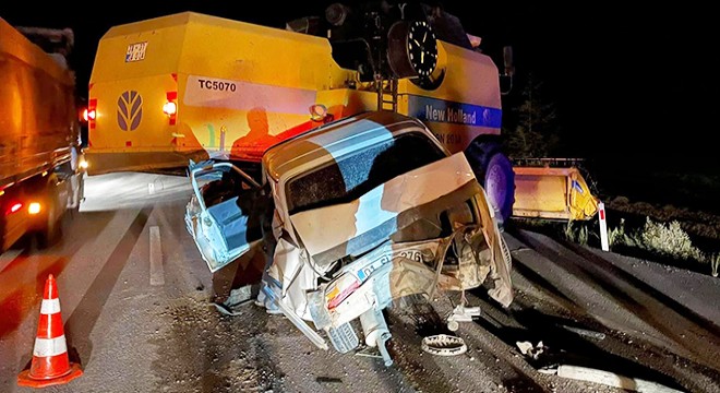 Kaza, dün saat 22.00 sıralarında Emirdağ Camili köyü kavşağında meydana geldi. Sürücüsü belirlenemeyen 01 SL 276 plakalı otomobil ile sürücüsünün adı ve plakası öğrenilemeyen biçerdöver kavşakta çarpıştı. Çarpmanın şiddetiyle savrulan otomobil, biçerdöverin üzerine çıktı. Biçerdöver ve otomobil bir süre sürüklendi. Kazada, araçlarda maddi hasar meydana geldi. Kazaya karışan araçlar vinç ve çekici yardımıyla kaldırıldı.