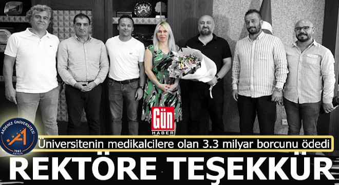 Daha önceleri eylem yapmak ve alacaklarını tahsil edemedikleri için şikayetçi olmak üzere hastaneye giden medikal firması sahipleri borçlar sıfırlanıp 1 yıldır da düzenli ödeme aldıkları için bu kez teşekkür ziyaretine gitti. Akdeniz Üniversitesi Rektörü Prof. Dr. Özlenen Özkan'ı makamında ziyaret eden medikal sektörü temsilcileri, iş birliklerinin devamını diledi. Ziyarete dair konuşan Prof. Dr. Özlenen Özkan, "Çok şaşırdım, beklemiyordum böyle bir ziyaret. 2021 yılı Ağustos ayında göreve geldik ve 3,3 milyar TL'lik borç vardı. Bunu ödememiz gerekiyordu. Tasarruf yaparak ödeme planı çıkardık ve bugün hiç borcumuz yok" diye konuştu.