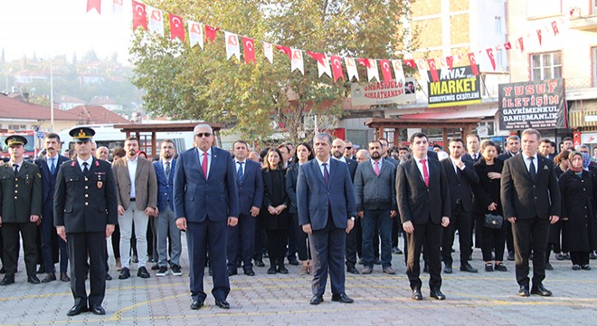 Kaymakam Bayram Gale ve Belediye Başkanı Vekili İsmail Baştaş, Atatürk anıtına çelenk sundu. Törene katılanlar saat 09.05'te siren eşliğinde 2 dakikalık saygı duruşunda bulunup İstiklal Marşı'nı okudu.