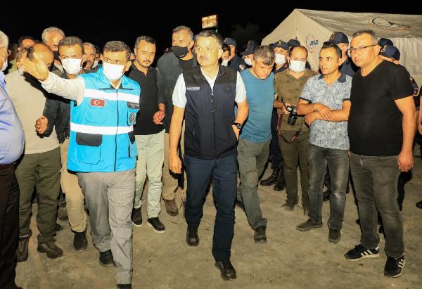 Bakan Pakdemirli, afetzedelerin bir kısmının yurtlara yerleştirildiğini, bir kısmının ise yakınlarının yanına gittiğini, yangın alanındaki hayvanların da tahliye edildiğini söyledi. Yangına 6 uçak, 11 helikopter, 76 arazöz, 37 iş makinesiyle müdahale edildiğini belirten Pakdemirli, "Şu ana kadar yangının etki alanı 300 hektar civarında gözüküyor. Yangınla ilgili 6 kişi gözaltında. Kolluk ve savcılık, adli merciler araştırmalarına devam ediyor" diye konuştu.