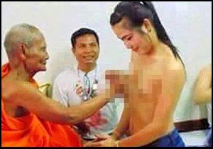 Budizm inancına göre kadınlara dokunmaları yasak olan Budist rahipler, sadece dini törenler dahilinde alınlarına kutsal yazılar yazabilirler ancak bunun haricinde hiçbir temasta bulunamazlar. Bu dini törende erkekler ise üstlerini çıkarırlar ve Budist rahip dualarını yaptıktan sonra erkeğin göğsüne kutsal yazılar yazar.