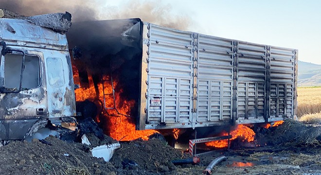 AFYONKARAHİSAR'ın Bolvadin ilçesinde buğday yüklü TIR'da seyir halindeyken çıkan yangın, itfaiye ekiplerinin müdahalesiyle söndürüldü. Yangın sonucu TIR kullanılamaz hale geldi.