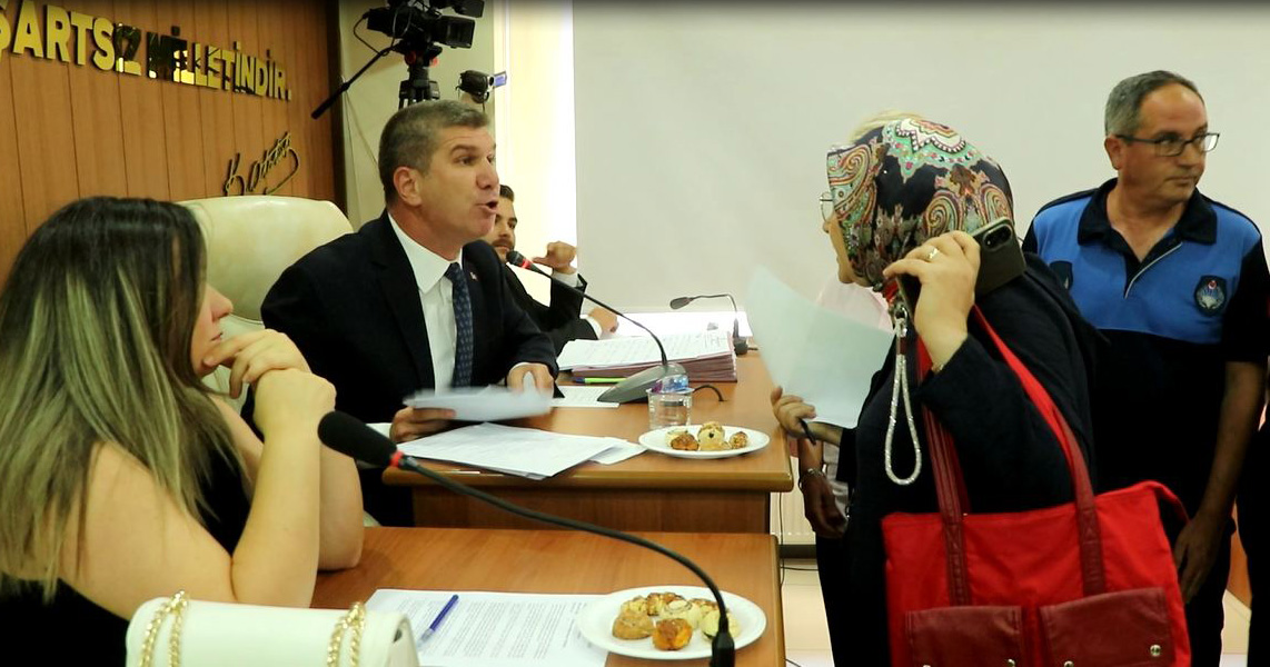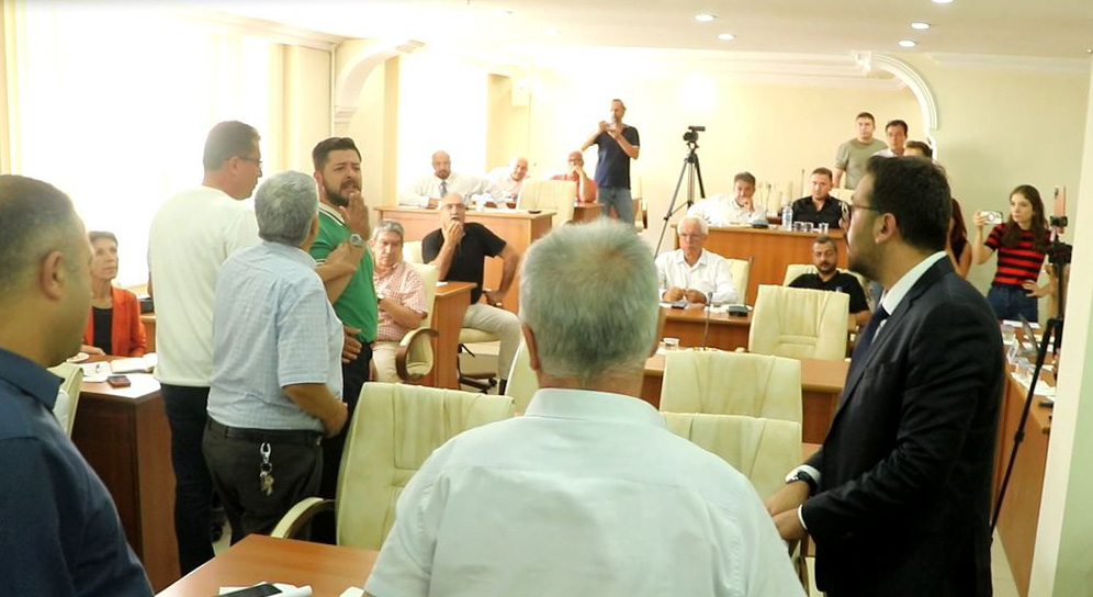 Başkan Ercengiz, ithamlara meclis toplantısında cevap vermek istediğini söylerken, Fatıma Küçükkaplan ise bunun yerinin meclis olmadığında ısrar etti. Tartışmaya CHP Grup Sözcüsü Ali Say ile AK Parti’li Hüseyin Büyükkeleş de dahil olunca gerginlik arttı. AK Parti ve CHP'li meclis üyeleri arasında sert tartışmalar yaşandı. Zaman zaman meclis üyelerinin birbirinin üzerine yürümeye kalktığı tartışmanın ardından AK Parti’li üyeler salondan ayrıldı. Belediye Başkanı Ercengiz ise toplantıya ara verdi. Ara sonrası meclis AK Parti’li üyeler olmadan devam etti ve Başkan Ercengiz burada eleştirilere yanıt verdi.