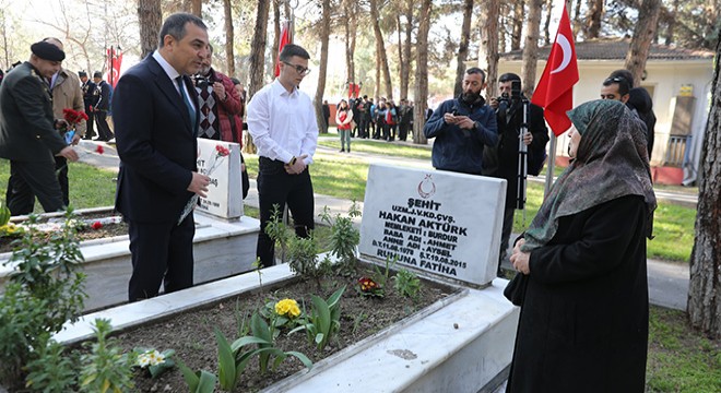 Şehitlikte düzenlenen törende Vali Türker Öksüz, Garnizon Komutanı Albay Şengezer Şimşek, Belediye Başkanı Ali Orkun Ercengiz ve Muharip Gaziler Derneği İl Temsilcisi Hasan Okyar tarafından anıta çelenk sunuldu. Saygı duruşunda bulunulması ve İstiklâl Marşı'nın okunmasının ardından bir manga asker tarafından saygı atışı yapıldı. Günün anlam ve önemine ilişkin konuşma yapılması ve Gazi Uzman Çavuş Himmet Can tarafından şiir okunan törende, Vali Türker Öksüz Şehitlik Özel Defterini imzaladı. Vali Öksüz, "Vatanımız için toprağa düşerek makamların en güzeline mazhar olmuş aziz şehitlerimiz; bizlere emanet ettiğiniz mukaddes vatan toprağını korumak için, ay yıldızlı bayrağımızın gölgesinde devletimizi ilelebet yaşatmak için, ezanlarımızı minarelerden özgürce dinlemek için, Türk milletini daima muzaffer kılmak için canla başla mücadele etmenin vazgeçilmez sorumluluğumuz olduğunun şuurundayız. Sizlerin ve şanlı gazilerimizin bu değerleri yaşatmak uğrunda gösterdiği cesaret, kahramanlık ve şehadet ruhu daima rehberimiz olacaktır. Hangi şartlar altında olursa olsun, her daim emanetinizi muhafaza ve müdafaa etmenin şan ve şeref borcumuz olduğunun bilinci içerisinde olacağız" ifadelerini kullandı. Kur'an-ı Kerim okuması ve dua edilmesi ile şehitlikteki tören sona erdi.