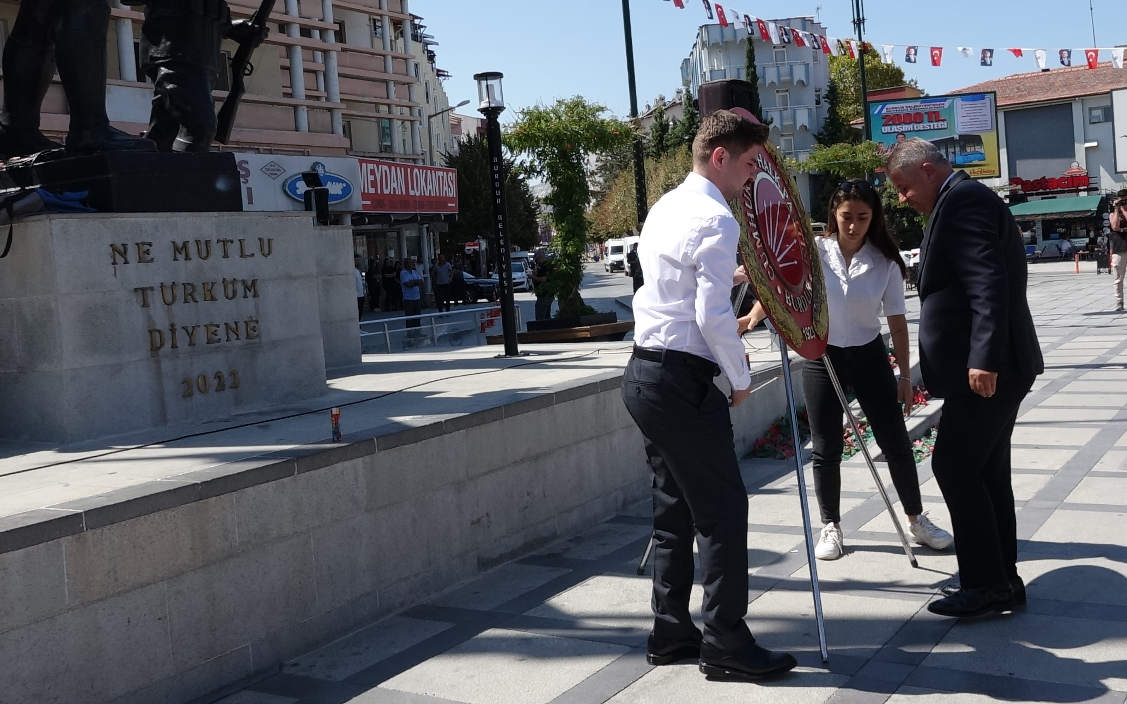 Cumhuriyet Meydanı'nda düzenlenen törene Cumhuriyet Halk Partisi İl Başkanı Kadir Koç, Burdur Belediye Başkanı Ali Orkun Ercengiz, Bucak Belediye Başkanı Hülya Gümüş ile partililer katıldı. Atatürk Anıtı'na çelenk sunulmasının ardından saygı duruşunda bulunuldu ve İstiklal Marşı okundu.