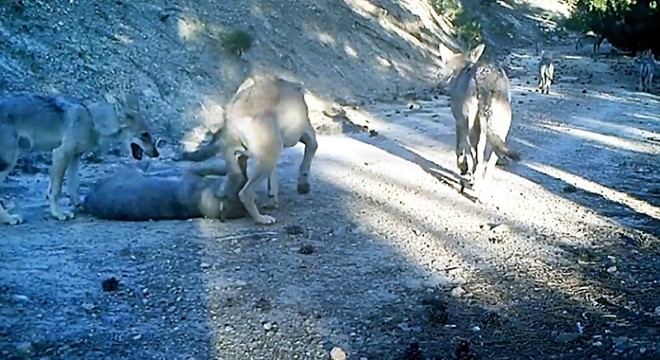 DOĞA Koruma ve Milli Parklar Burdur (DKMP) 6'ncı Bölge Müdürlüğü'nün yaban hayatını izlemek için yerleştirdiği fotokapanlara, bölgede yaşayan kurtlar yansıdı.