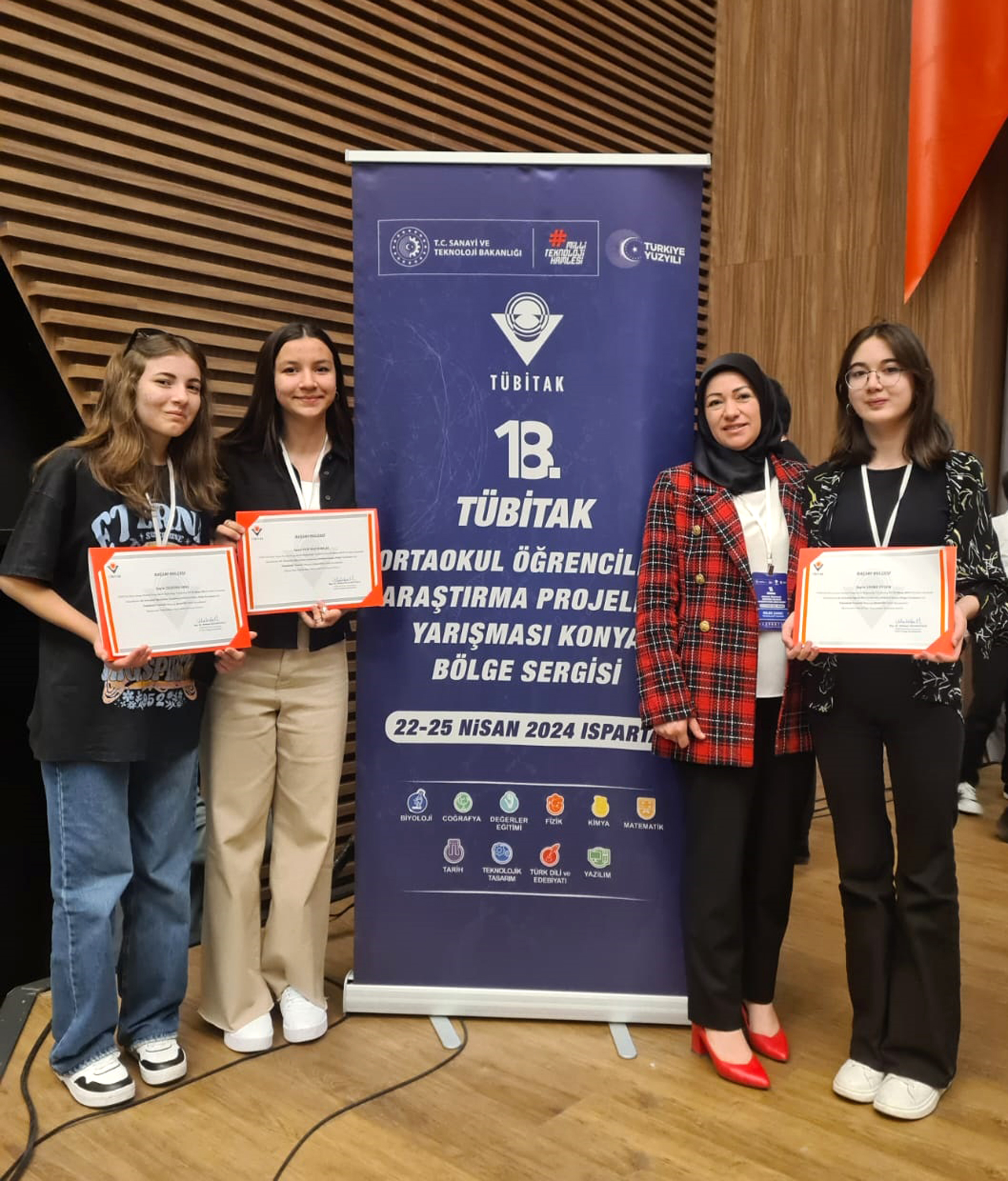 Matematik alanında Defne Gürel, Türkçe alanında Yiğit Işık ve Medine Nisa Akın'ın merkezi temsil ettiğini aktaran Tuncay Sakar, "Öğrencilerimize danışmanlık yapan Melek Çakıcı, Aybetül Türken, Yasemin Çayır öğretmenlerimize teşekkür ederiz. Teknoloji tasarım alanından bölge birincisi seçilip Türkiye finallerinde merkezimizi, ilimizi ve bölgemizi temsil edecek öğrencilerimize başarılar dilerim" diye konuştu.