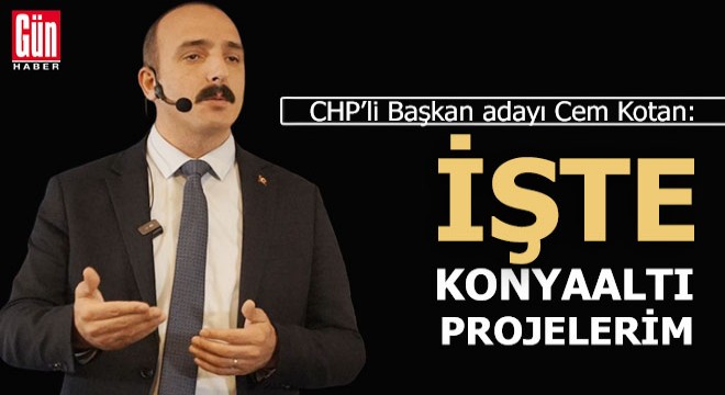 Aday adaylığı döneminde elinde 100 kadar proje olduğunu dile getiren Cem Kotan, adaylık açıklandıktan sonra 2 ana konunun öne çıktığını açıkladı. Kotan, şöyle devam etti: “Birincisi sloganımız ne olacaktı. Aday adayı iken ‘Konyaaltı’nı birlikte yöneteceğiz’ sloganını devam ettirme kararı aldık. Bunu gerçekleştirmek için de 100 projeyi bir kenara bıraktık. Halkımıza ineceğiz, onların talep ve isteklerini dinleyeceğiz, projeleri ona göre şekillendireceğiz dedik. Aslında şu anda saydığımız 41 projenin hepsi Konyaaltı halkının talep etiği şeyler. Biz onların taleplerini size yansıtıyoruz. Burada çılgın proje yok. Hepsi hayatın içine dokunan, hayatın içinde konfor alanları yaratmayı amaçlayan projeler.”