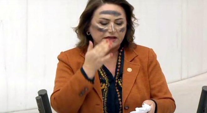 Madenlerin halkın malı olduğunu belirten Müzeyyen Şevkin, yanında getirdiği siyah boya ile yüzünü boyamaya başladı. Şevkin, "Şu karayı Soma'da ölen madenciler için, şu karayı Amasra'da ölen madenciler için, bu karayı İliç'te ölen madenciler için, bu karayı da alnıma sürüyorum koruyamadığımız bütün madencilerimiz için. Bu kara hepimizin alnının karasıdır" dedi.