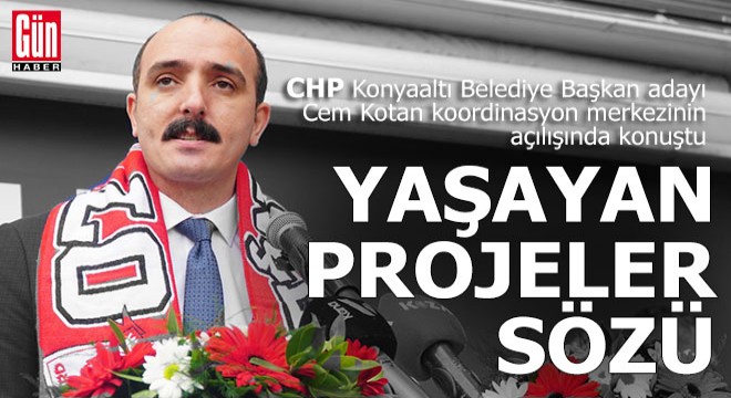 CHP Konyaaltı Belediye Başkan adayı Cem Kotan da açılışta, Konyaaltı'nın sahilini, doğasını, tarihini koruyarak, Konyaaltı’nı herkes için yaşanabilir, daha mutlu bir yaşam sürdürülebilir hale getirmek için yola çıktığını bildirdi.