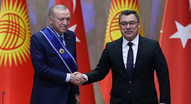 Cumhurbaşkanı Sadır Caparov, ‘Kırgız Cumhuriyeti ile Türkiye Cumhuriyeti arasındaki stratejik ortaklığı geliştirmeye ve iki ülke halkları arasındaki dostane ilişkileri güçlendirmeye yönelik katkıları’ nedeniyle Erdoğan'a birinci derece ‘Manas Nişanı’ takdim etti.