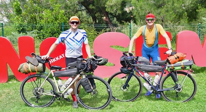 Dünya turuna çıkan İngiliz bisikletçiler baba Geoffrey Sherwood, oğul William Sherwood, Türkiye'de yaşanan depremlerden etkilenen vatandaşlara maddi yardım amacıyla binlerce kilometre pedal çeviriyor. Bisikletle Kıbrıs'tan Londra'ya yola çıkan baba ve oğul, Manisa-İzmir güzergahında Yunusemre Belediyesi'nin misafiri oldu. Baba ve oğul, yorucu temponun ardından Yunus Emre Kültür Parkı Tesisleri'nde bir gece konakladı ve burada Osmanlı Müzesi'ni ziyaret ederek Türkiye'nin kültürü ve tarihi hakkında bilgi sahibi oldu. Bisiklet turunu depremzedelere destek amacıyla yaptıklarını belirten baba Geoffrey Sherwood, "Hatay ve çevre illerde yaşanan depremler bizi üzdü. Bölgedeki depremden etkilenen vatandaşlara yardım amacıyla böyle bir tura çıktık. Tur esnasında gittiğimiz topluluklarımızdan para topluyoruz. Şimdiye kadar 3 bin pound topladık. Londra'ya kadar 2 bin pound daha toplayıp elde edilen 5 bin poundu ilgili kurumlara ve derneklere bağışlayacağız. Hem sosyal sorumluluk hem de yeni insanlar tanıma açısından yollardayız" dedi. Türkiye'yi ve Manisa'yı çok beğendiklerini kaydeden Geoffrey Sherwood, "Biz İngiltere'nin Bournemouth kentinde yaşayan bisiklet tutkunu bir aileyiz. Ben bilgisayar mühendisliğinden emekliyim, oğlum da acil serviste doktor. Türkiye'de dost canlısı insanlarla karşılaştık ve çok iyi ağırlandık. Hiçbir sorun yaşamadık. Bizleri güzel tesislerinde ağırlayan Yunusemre Belediyesi'ne teşekkür ediyoruz" diye konuştu.(DHA)