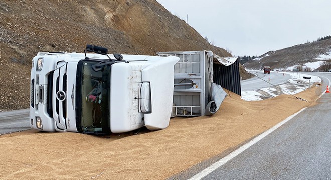 Kaza, Bolvadin-Emirdağ karayolu Kapaklı mevkiinde meydana geldi. Emirdağ'dan Bolvadin'e ilerleyen B.B.'nin kullandığı 42 AUN 53 plakalı buğday yüklü TIR, kontrolden çıkarak refüje devrildi. TIR sürücüsü kazayı yara almadan atlattı. Araçtaki buğday ise yola savruldu. İhbar üzerine bölgeye gelen jandarma ekipleri, güvenlik önlemi alarak trafik akışını sağladı.
