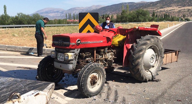 Kaza, saat 09.30 sıralarında Dinar- Çivril yolunda meydana geldi. Hidayet Yıldız'ın kullandığı 20 ADU 217 plakalı sulama malzemesi yüklü kamyonetle Ramazan Demir'in (81) kullandığı 03 FD 549 plakalı traktör dönel kavşakta çarpıştı. Kazanın şiddetiyle devrilen traktörün sürücüsü Ramazan Demir yaralandı. Kamyonetin sürücüsü Hidayet Yıldız ise kazayı yara almadan atlattı.