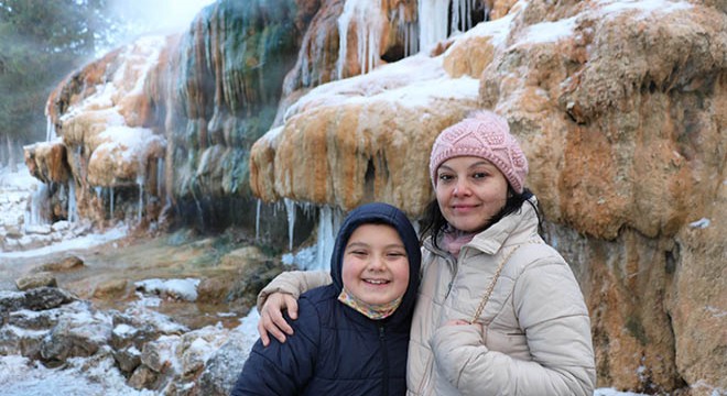 İstanbul'dan kaplıcaya tatile gelen Müjgan Yenipınar, "Bugün kaplıcada üçüncü günümüz. Ama gerçekten güzel bir görüntü ile karşılaştık. Rabbimin işi. Görsel şölen gibi bir şey. Bir taraftan kaynamış su ile buhar çıkıyor. Bir taraftan sarkıtlar, dikitler buz tutmuş. Benim oğlan da çok beğendi" dedi.