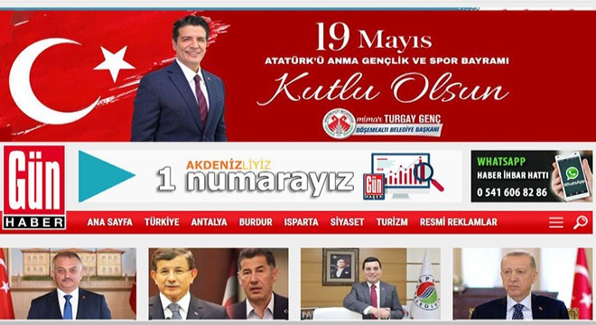 Konyaaltı Belediyesi 19 Mayıs Bayramı reklamının Gün Haber sayfasında görüntüsü