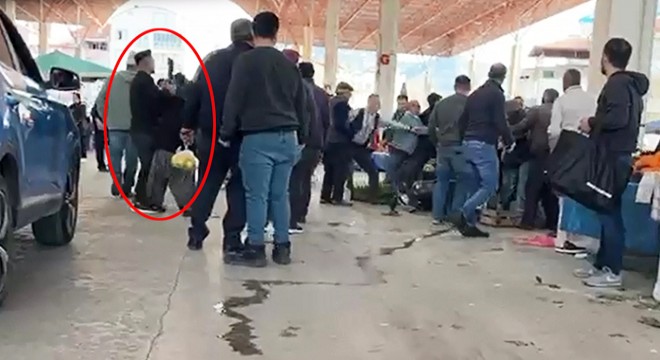 Öte yandan pazar yerinde yaşanan kargaşa, cep telefonuyla görüntülendi. O.T.'nin tutukluk yapan tüfeğini pazardaki bir kişinin aldığı, dünürü M.C.'nin annesi olduğu öğrenilen kişinin ise tüfeği bu kişinin elinden almaya çalıştığı, bu sırada bağrışmaların olduğu anlar görüntüye yansıdı.