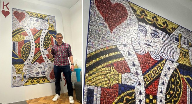 Uzaktan bakıldığında, geleneksel bir oyun kağıdı tasarımı gibi görünen kartın, yakından bakıldığında insanların ve hatta bazı evcil hayvanlarının fotoğraflarından oluştuğu görülüyor.