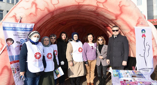 'Kanserle dans eden kadın' olarak bilinen ve daha önce 2 kez kanseri atlatan Kanserle Dans Derneği Başkan Yardımcısı Güzin Yıldırım da hastalığın topluma anlatılmasında önemli mücadelelerin verildiğini kaydetti. Güzin Yıldırım, "Birçok il ve ilçede kalın bağırsak maketini gezdirip, insanlara farkındalık yaratmak için bu yola baş koyduk. Maketin içinde sağlıklı bağırsaktan başlıyor. Daha sonra bağırsak hastalıkları, en son bağırsak kanseri ve kanserin tamamen yayılış haline kadar bir görsel var. Tabii maket büyük olduğu için içine hastalıklarla ayrıntılı bir şekilde gösterildiği için herkesin dikkatini çok çekiyor. Sağlık Bakanlığı'ndan ASM'lerden arkadaşlarımız kan kitleri dağıtıyor, 50 yaş üzeri herkese. 50 ve 75 yaş arasındaki olanlara onlara gizli kan testi dağıtıyorlar. Biz meme broşürleri, erken tanıyla ilgili yapabilecekleri her şeyle ilgili broşürler verip bilgilendirmeler yapıyoruz. Yaklaşık 65 il ve ilçe toplamında bu çalışma yapıldı. En son mesela gittiğimiz köyde 5 kişilik kolon kanseri teşhis edildi. Bu sayede keşke çıkmasa ama hiç olmazsa erken farkına varmaları önemli. Çünkü biliyorsunuz birçok hastalık çok hızlı ilerliyor. Önemli olan erken teşhiste bunun farkına varmaları" diye konuştu.