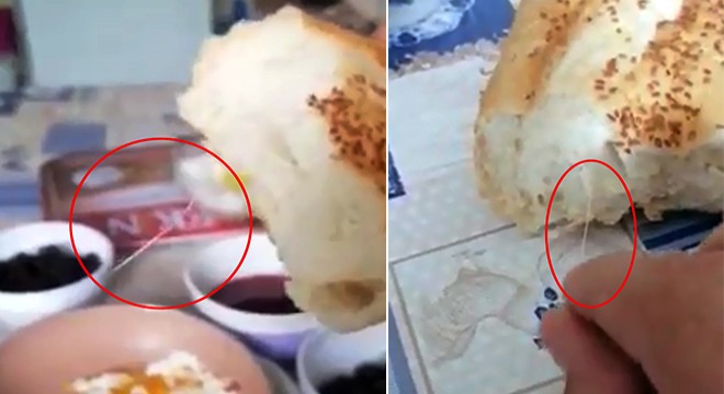 Emirdağ ilçesi Suvermez Caddesi üzerinde faaliyet gösteren bir fırından ekmek alan Mustafa Avcı, iddiaya göre kahvaltı yaparken kestiği ekmeğin içinde iplik olduğunu gördü. Ekmekten ip çıktığını görünce cep telefonuyla görüntüleyen Mustafa Avcı, "Kahvaltı yapacağım ekmeği ikiye böldüğümde böyle bir ip çıktı. Emirdağ Suvermez yolundaki fırından aldığım ekmekten ip çıktı. İpe asılıyorum, çekiyorum ama çıkmıyor. İp ekmekle birlikte geliyor, ipi mi yiyelim" diye tepki gösterdi.